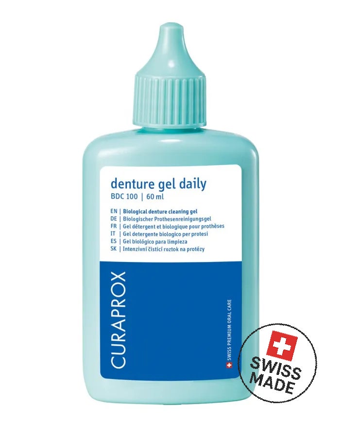Curaprox BDC Daily on hellävarainen mutta tehokas geeli hammasproteesien, purentakiskojen ja oikomiskalvojen päivittäiseen puhdistukseen. Se poistaa epäpuhtaudet ja bakteerit luonnonmukaisesti ilman hankaavia tai suuta ärsyttäviä aineita – pidentäen laitteiden käyttöikää ja edistäen suun terveyttä.